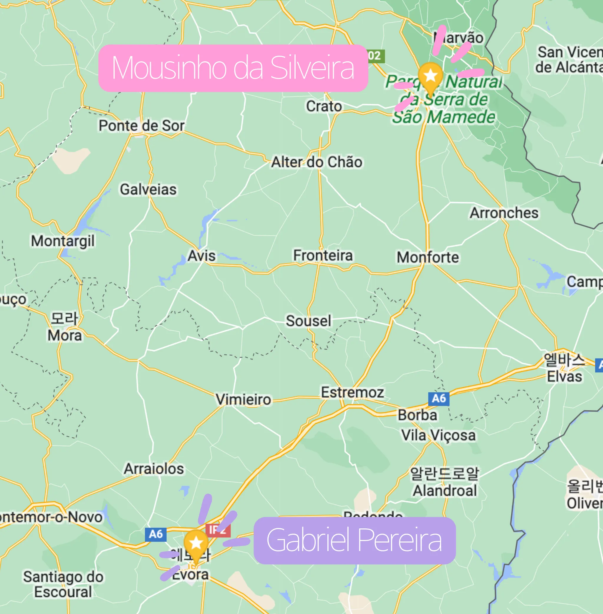 - 각각 Evora라는 도시와 Portalegre라는 도시에 위치해 있다. 따라서, 여기서 ‘도시’라 함은 각각 Evora와 Portalegre를 의미할 것이다.