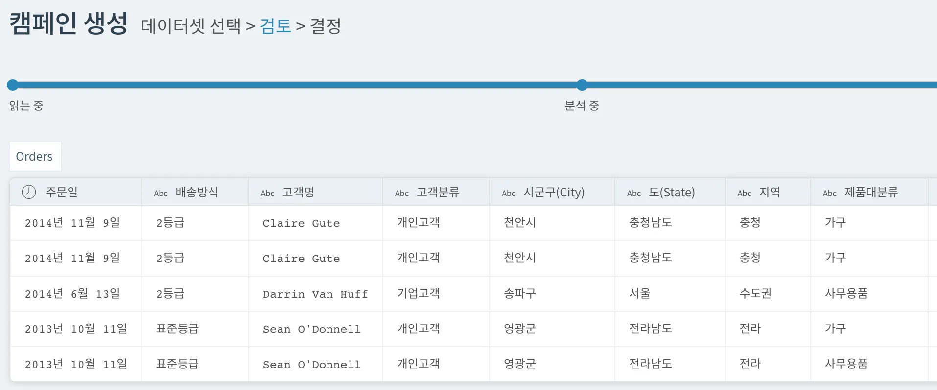 먼저, 데이터셋 검토 과정에서 “주문일”이라는 시간 변수(2014-11-09)가 존재하는 걸 확인할 수 있네요.