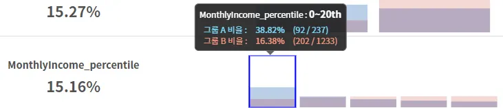 • 1) 월 급여 수준: 하위 0~20%의 인원 중에서 퇴사자가 많았습니다.
