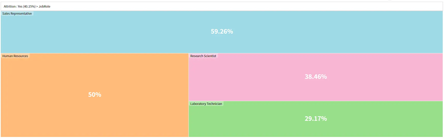 직무로 구분한다면 위와 같이 Laboratory Technician, Sales Representative, Sales Executive, Human Resource 그룹에서 퇴사가 많이 발생하고 있었습니다.