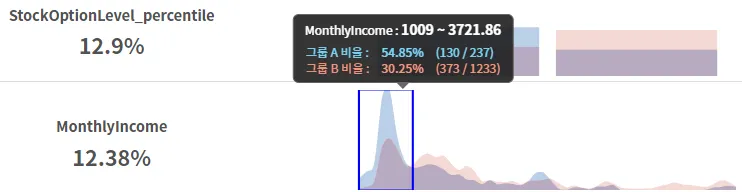 • 월급이 $1,009 ~ $3,721.86 사이인 경우 퇴사자가 많았습니다.