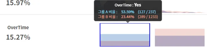 • 2) 초과 근무: 퇴직자 중 초과 근무를 하는 인원이 많았습니다.